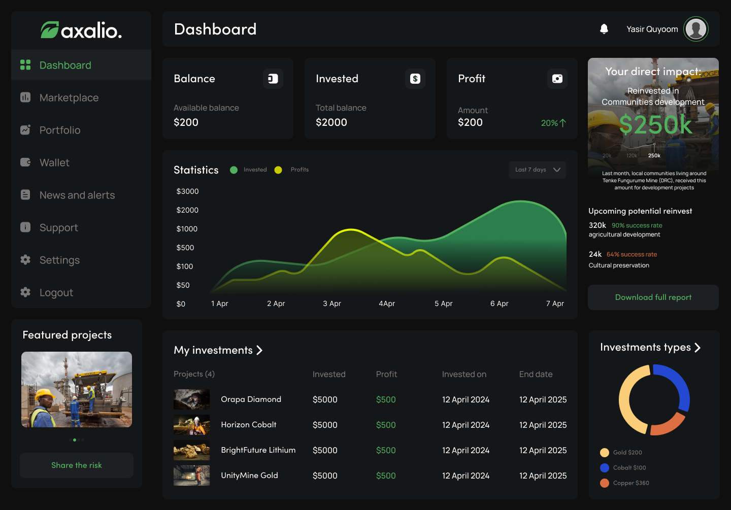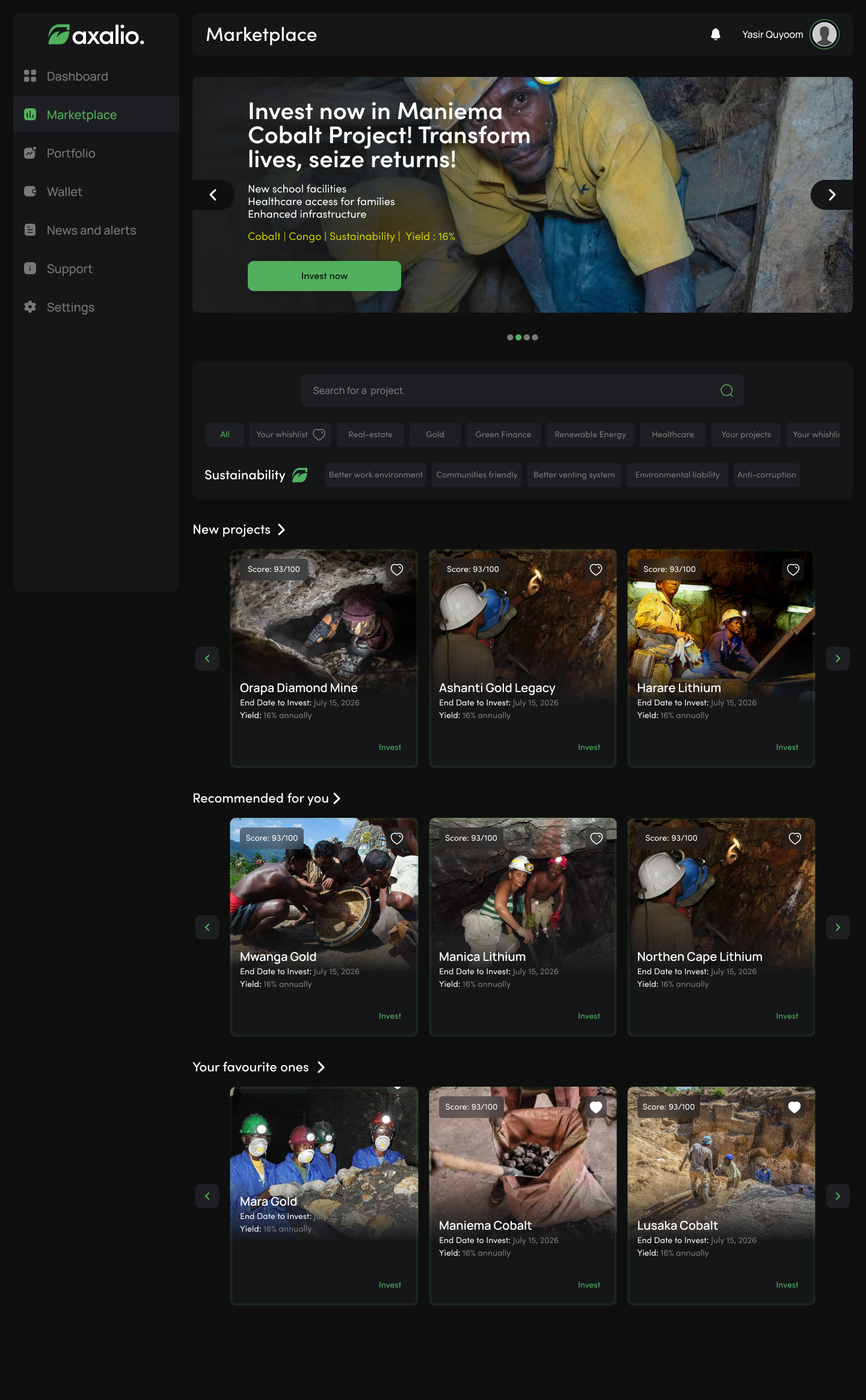I redesigned Axalio’s website and MVP to better communicate core values and attract potential investors. Restructured key product features to highlight transparency, sustainability, and financial inclusion while optimizing development costs.